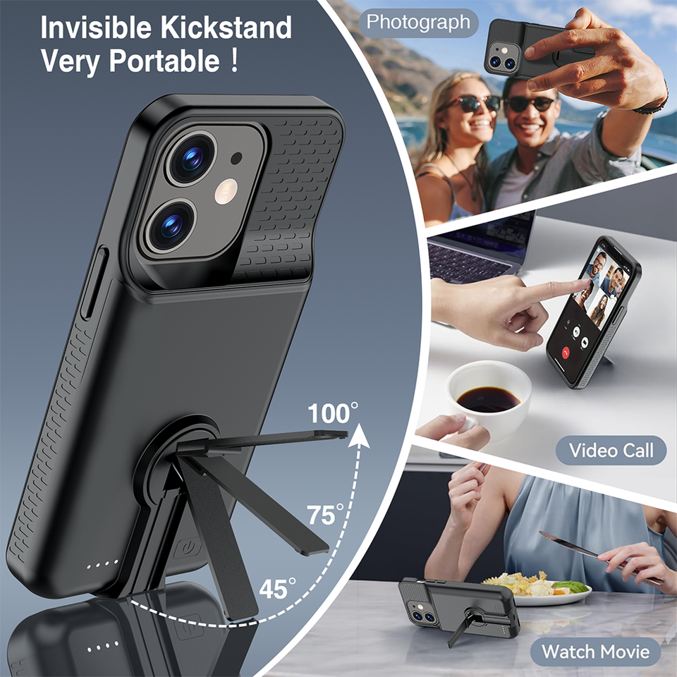 Coque de téléphone à batterie étendue Rechargeable en TPU avec support pour iPhone 12 13 14 15 16 Pro Max Power Bank Battery Case
