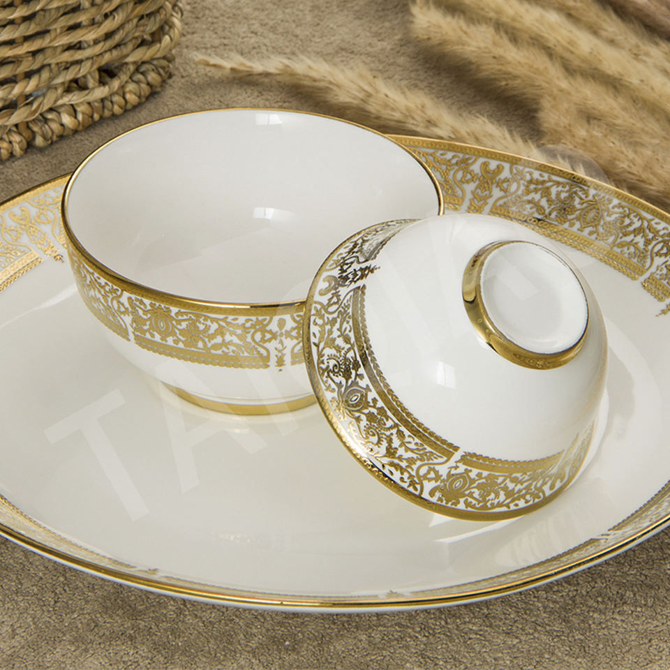 Produit:Ensemble de vaisselle en céramique cerclée d'or