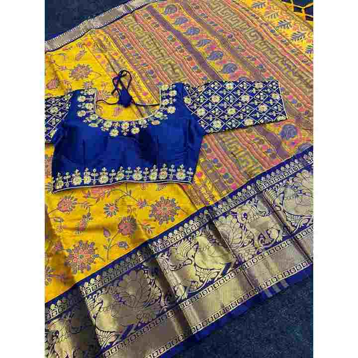 Traditional Cotton Silk Jacquard Work Saree with Stitched Blouse Mustard Color Dress