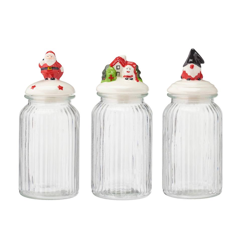 Bocal en verre transparent avec couvercle décoré de Noël H 26 cm assorti