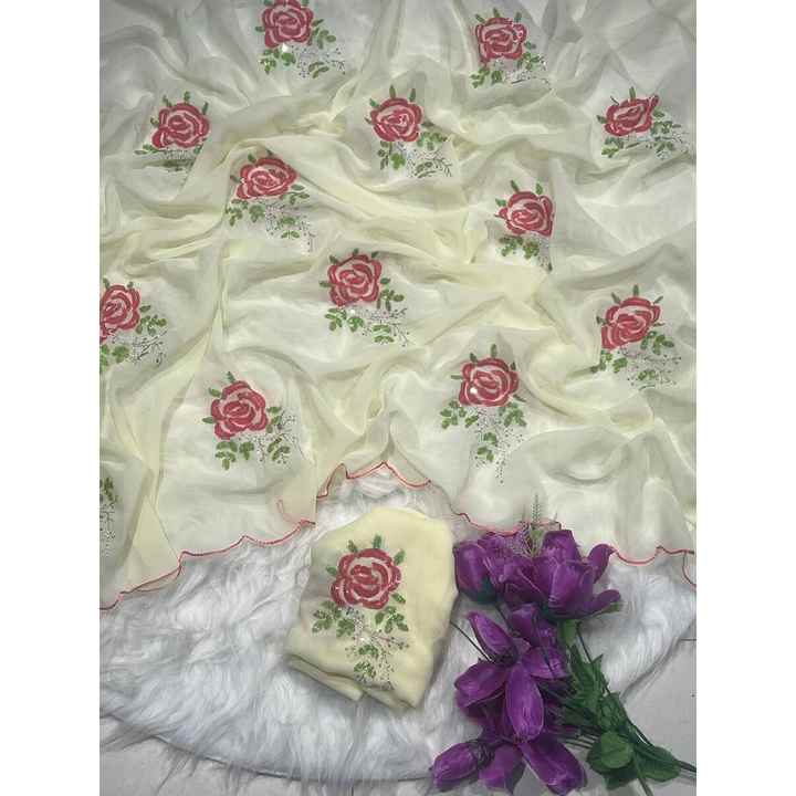 TREANDING GEORGETTE SEQUENCE WITH ARCO BORDER WORK SAREE WITH UNSTITCHED BLOUSE LEMON