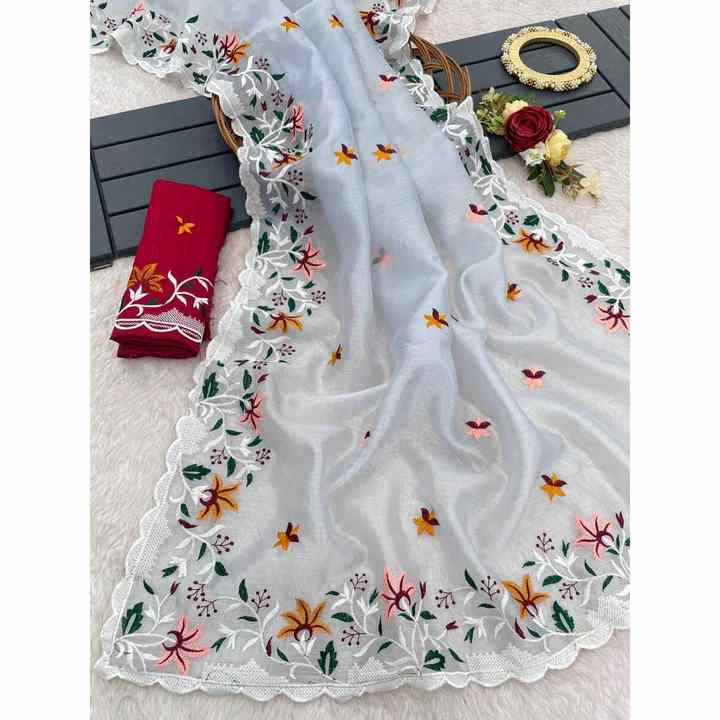 TREANDING ORGANZA SILK EMBROIDERY WORK SAREE WITH UNSTITCHED BLOUSE GREY