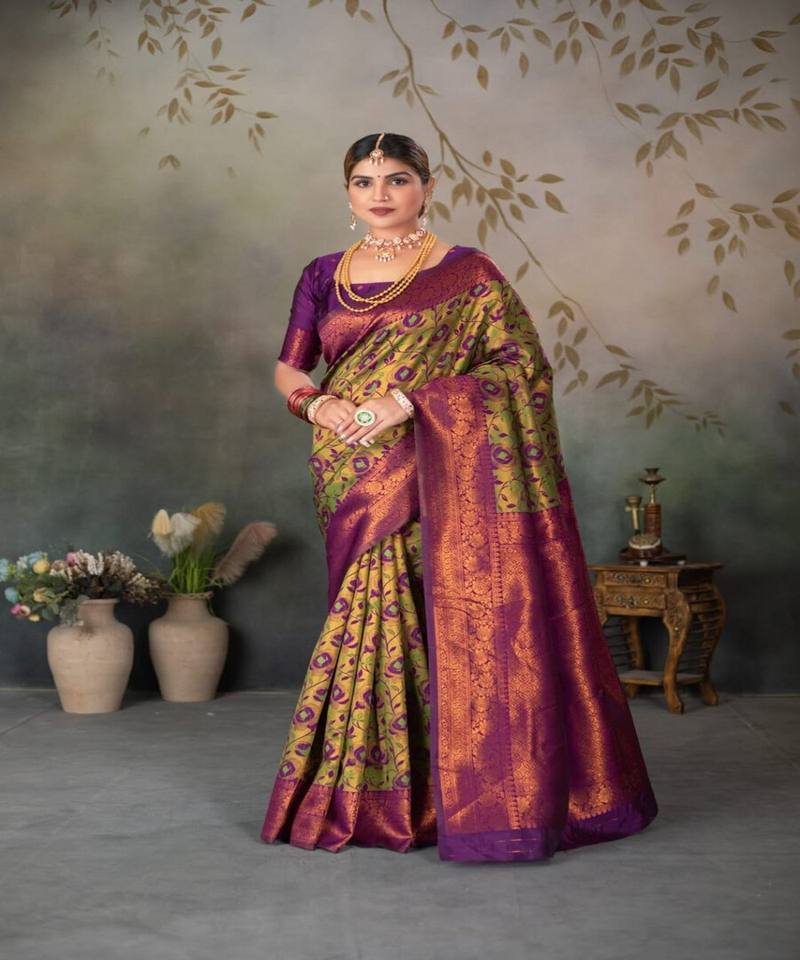 Work:Weaving, Jacquard, Banarasi silk, Cotton silk