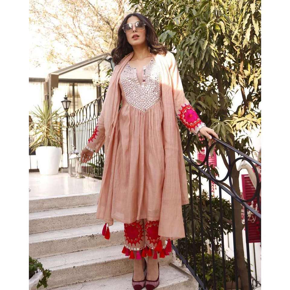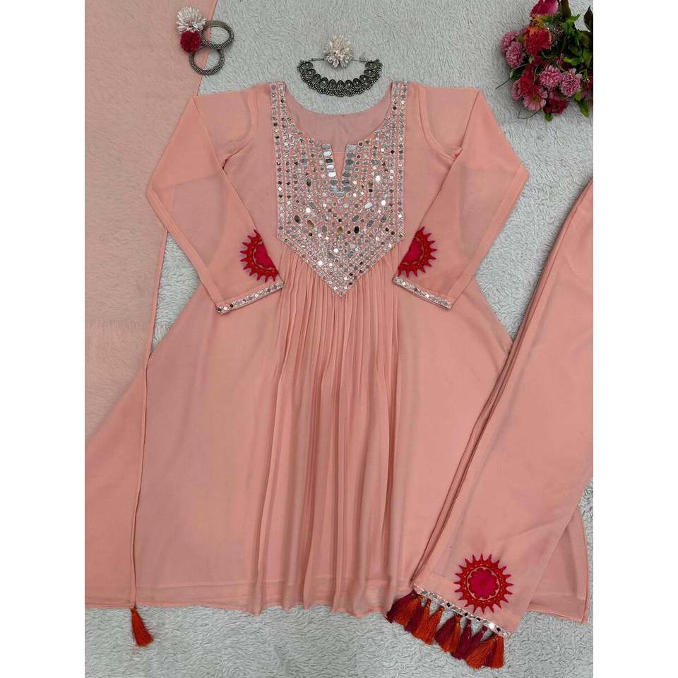 Bas de pêche tendance pour femme avec fil Georgette et véritable miroir comprenant un ensemble Dupatta