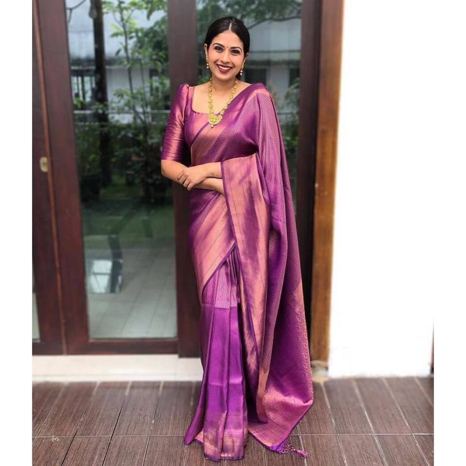 Sari en soie LICHI tendance avec travail de tissage et blouse non cousue ROSE