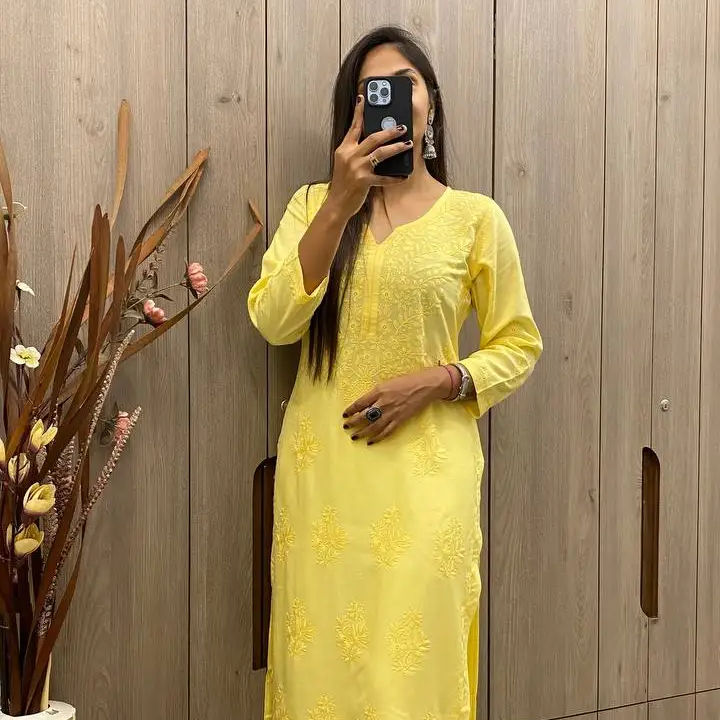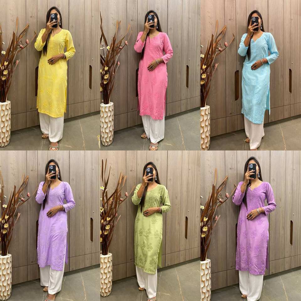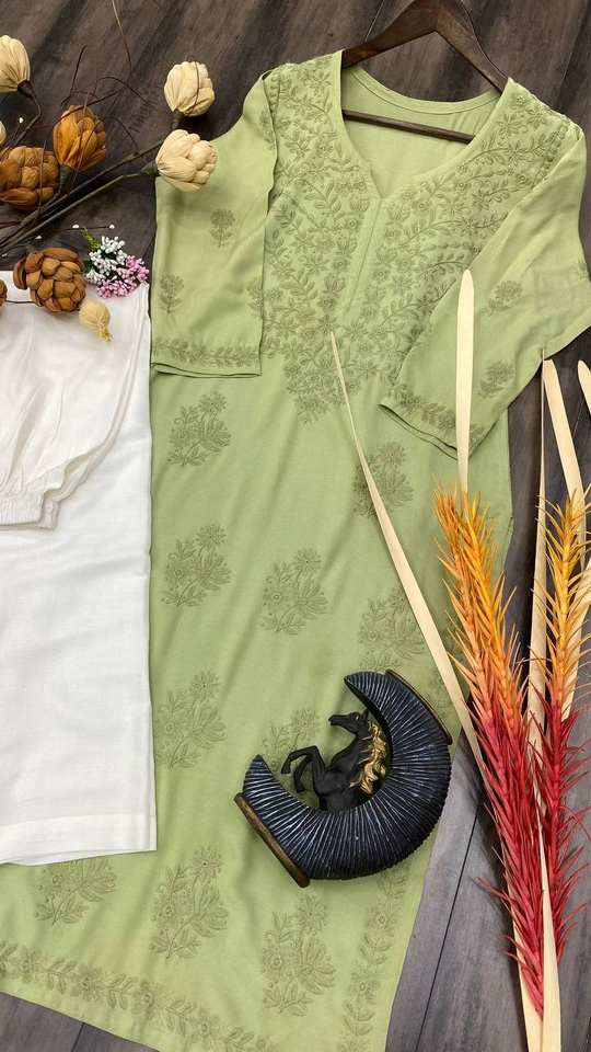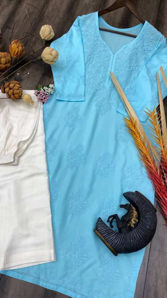 TOP EN RAYONNE TENDANCE AVEC FIL DE COTON BRODÉ TRAVAIL ET PANTALON KURTA COMBINAISON ÉLÉGANTE DE COULEURS CASUAL DAILY WEAR ROBE SUIT
