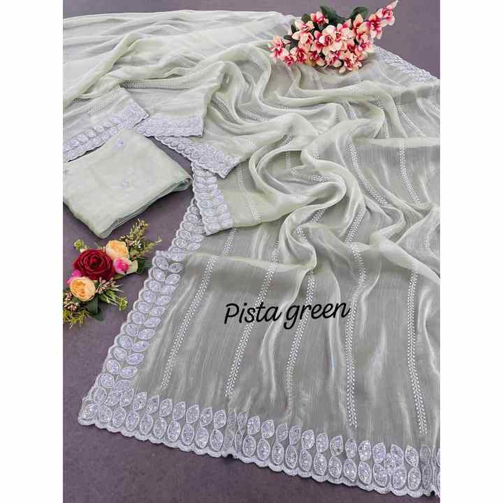 TRENDING SILK CHIFFON SEQUENCE WORK SAREE WITH UNSTITCHED BLOUSE PISTA