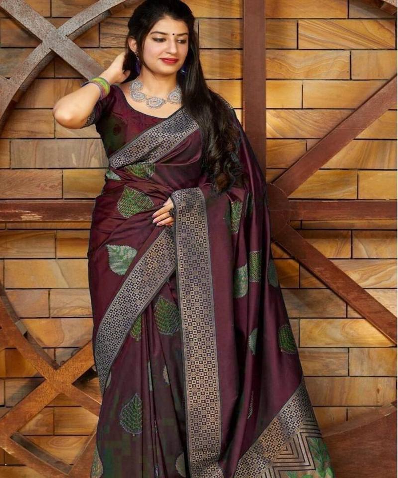 TENDANCE DOUCE LICHI SOIE JACQUARD TRAVAIL SAREE AVEC BLOUSE NON COUCHÉE VÊTEMENT DE FÊTE PRIX DE GROS VÊTEMENT ETHNIQUE