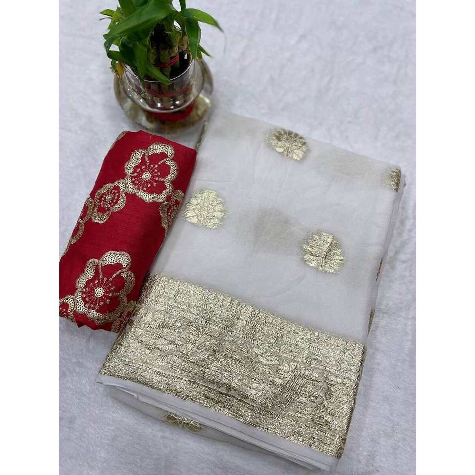 TRENDING VISCOSE GEORGETTE SAREE WITH SEQUENCE WORK BLOUSE WHITE