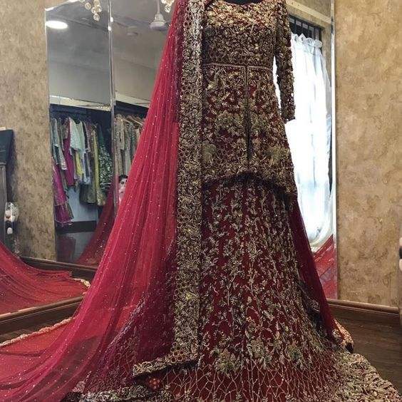 TRENDY--BEAUTIFUL--BRIDAL--KURTA avec LEHENGA-robe avec sentier ---- embellie en cristal perles de verre pierre pour mariage = 2021