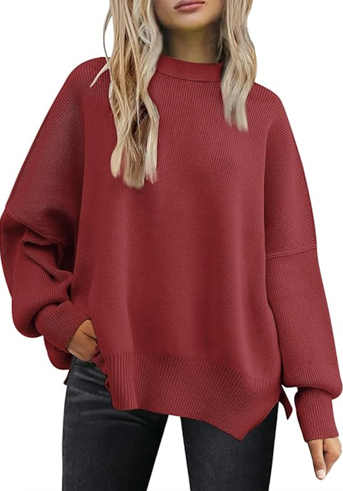 TRENDY CHRISTMAS SWEATER OVERSIZED BATWING WOMEN CREWNECK SIDE SLIT KNIT PULLOVER FALL FASHION LOOSE HOLIDAY JUMPER
