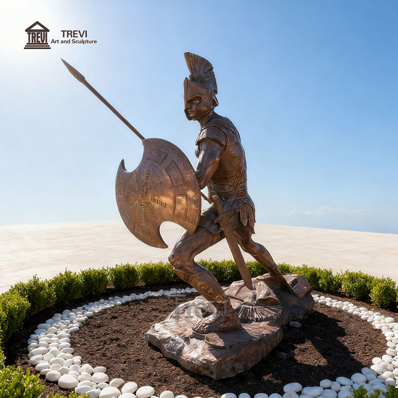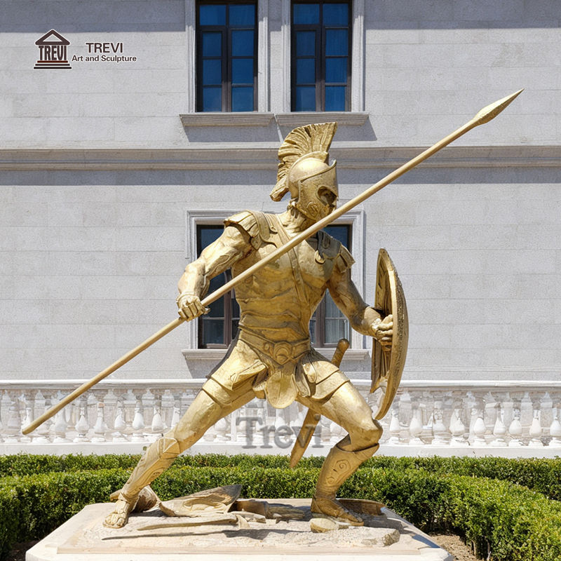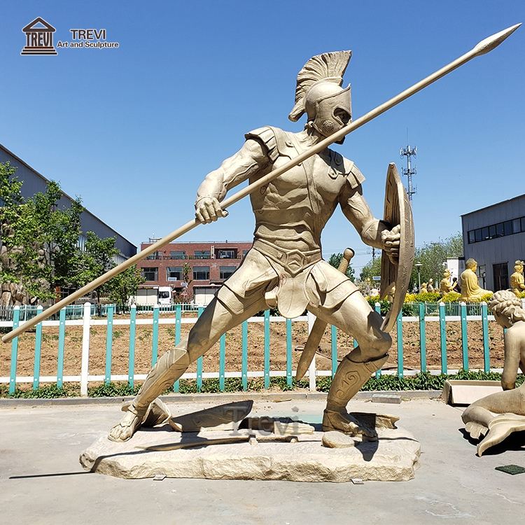 TREVI Prix d'usine Style antique antique Sculpture de jardin grandeur nature en laiton Bronze Grèce antique Statue de guerrier spartiate à vendre