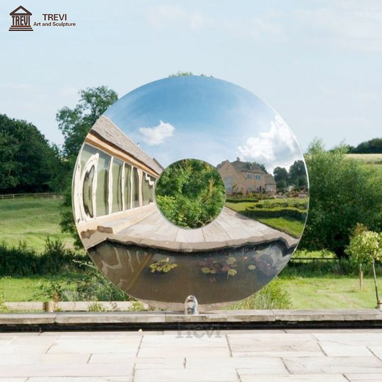 TREVI High-Polished Modern Abstract Statue Large Round Stainless Steel Disc Sculpture for Outdoor Garden