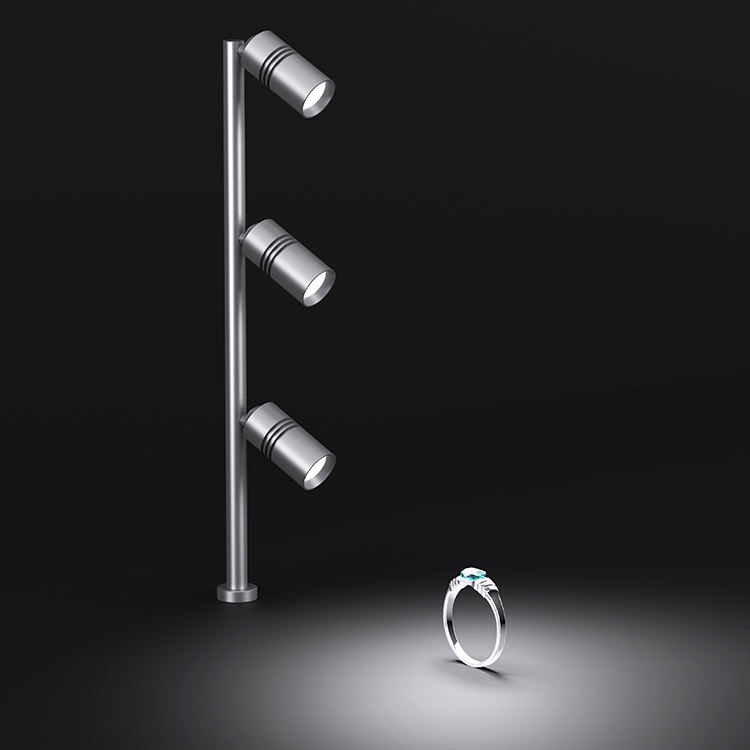 TRI-1362-002 CRI 90 Éclairage de vitrine, finition argent noir, éclairage LED pour bijoux, personnalisation, éclairage de musée