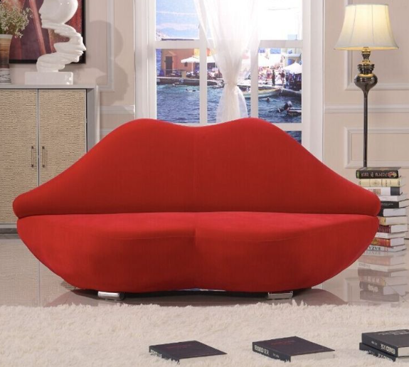 TRIHO S81819 Modern Leisure Fiberglass Fabric Red Lip Shape Couch Living Room Chaise Lounge Sofa