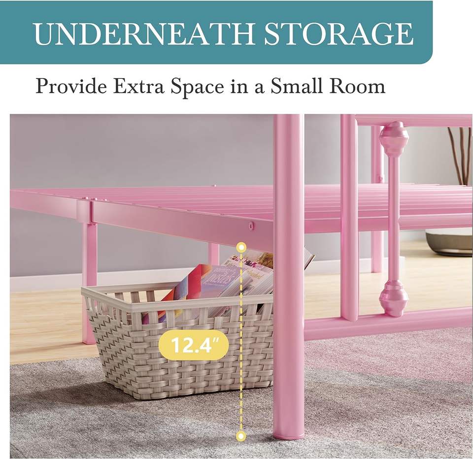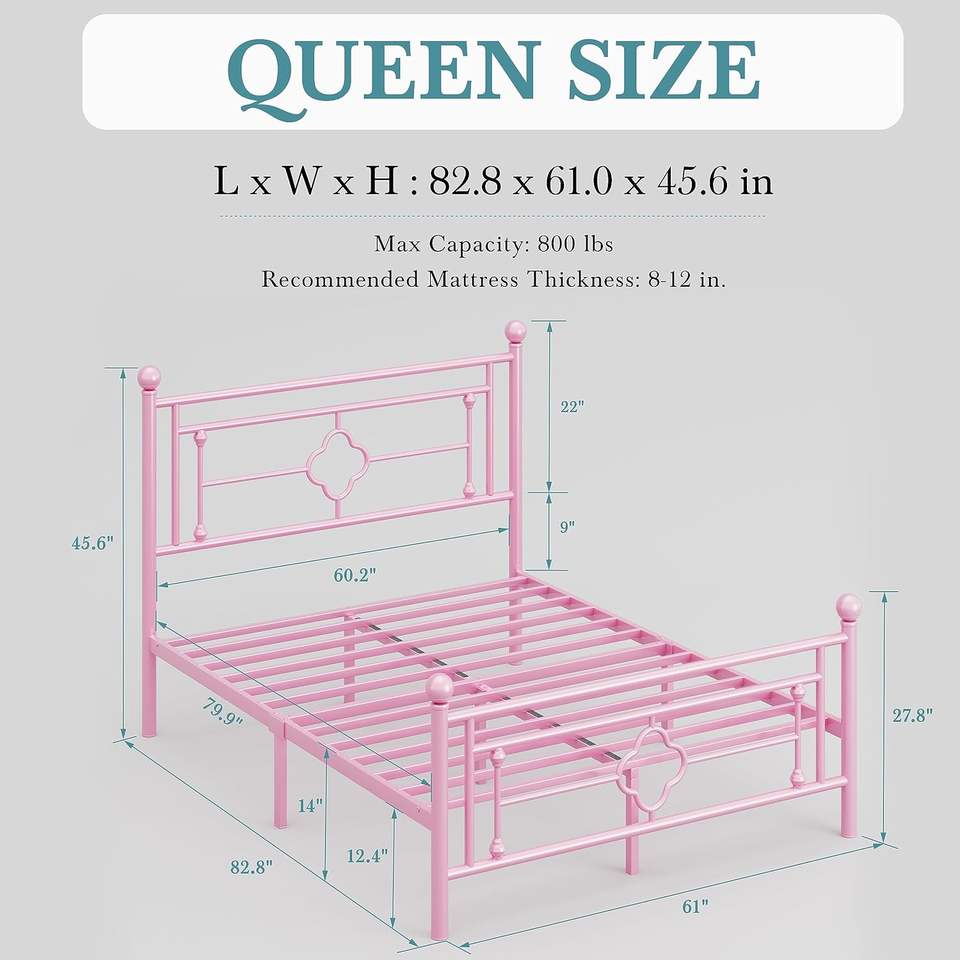 Cadre de lit en métal noir au design moderne TRIHO THF-1576, taille Queen, avec tête de lit et pied de lit, plateforme simple