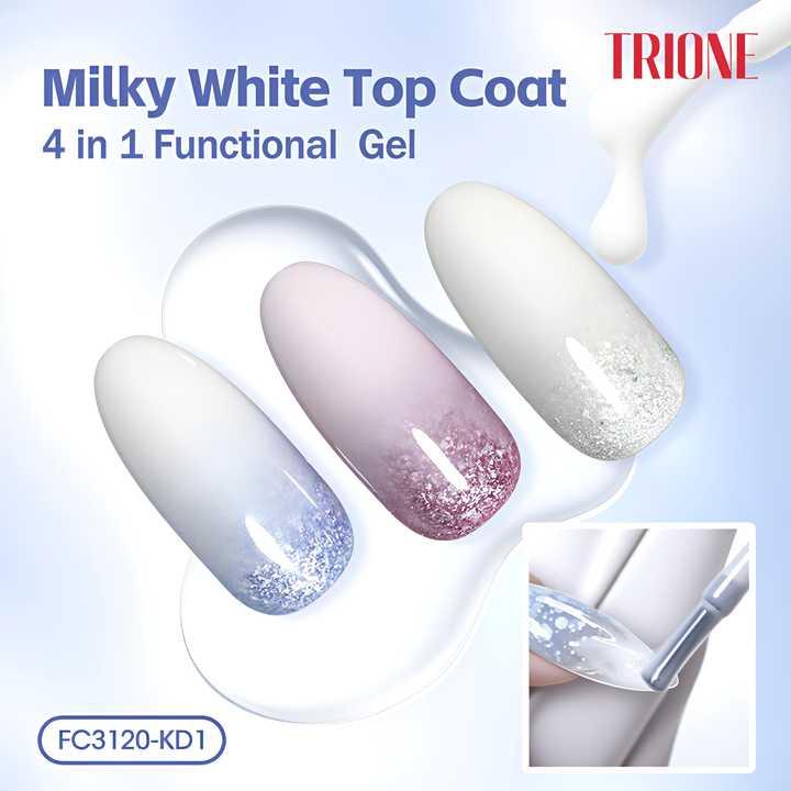 TRIONE/Logo personnalisé Gel de finition blanc laiteux 15ml Sans essuyage Topgel lait Longue durée UV LED Gel pour les stylistes Style Nail Art