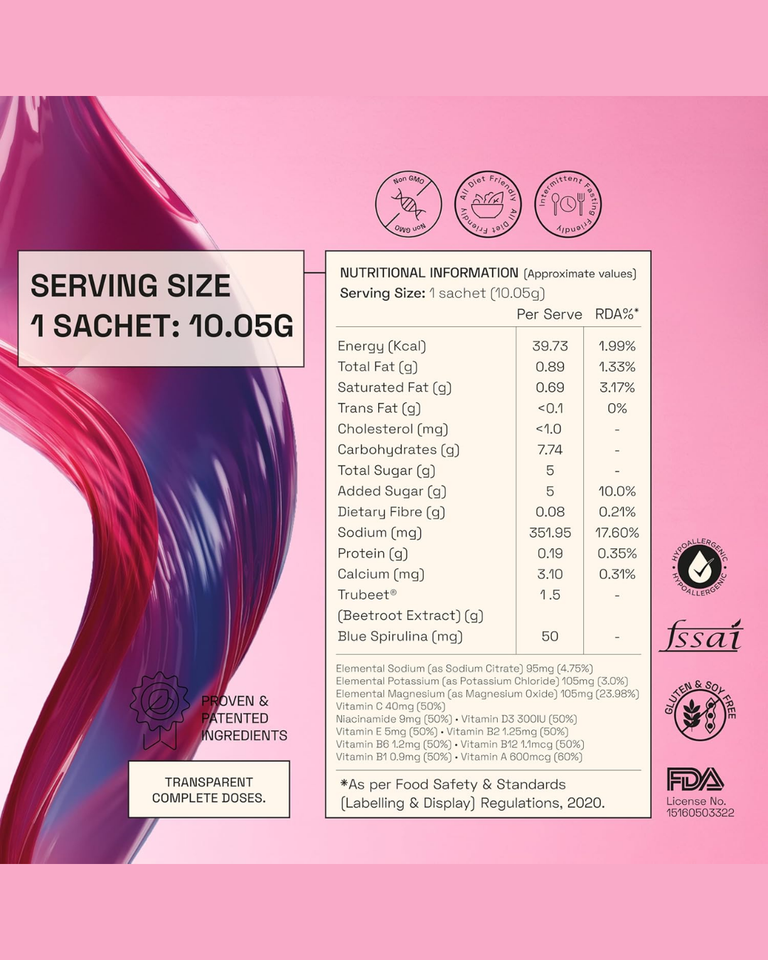 TRUBEET Hydro Hype Saveur Citron Framboise Intense avec Extrait de Betterave Mélange de Boissons Électrolytiques Naturelles 1500mg