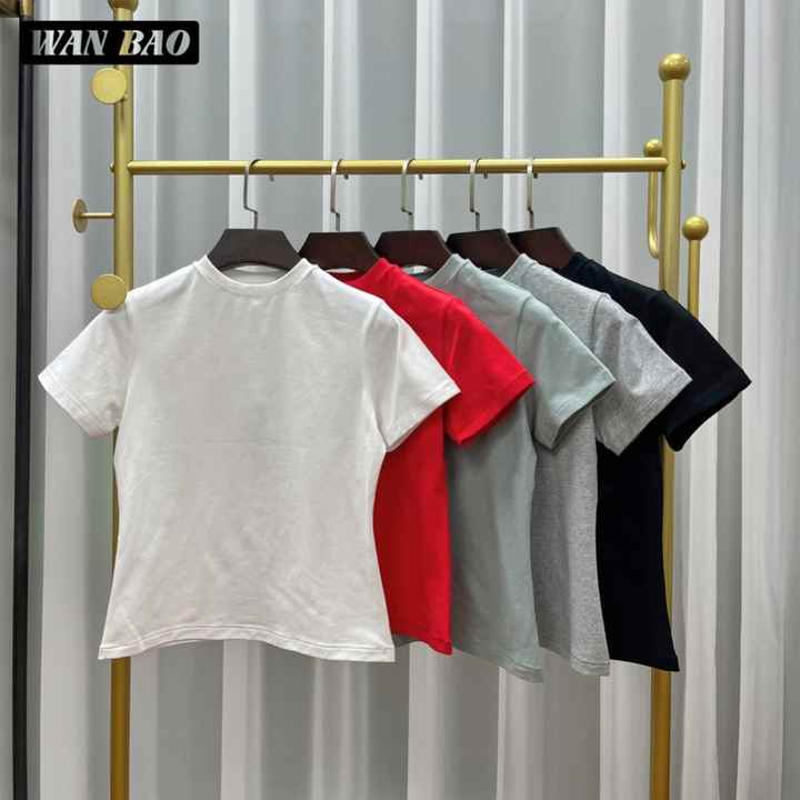 TS-2503 Wholesale Anti-Pilling Eshow T-Shirt Women Hot Pink Short Sleeves Casual American Clothing Top Made Plain Dyed