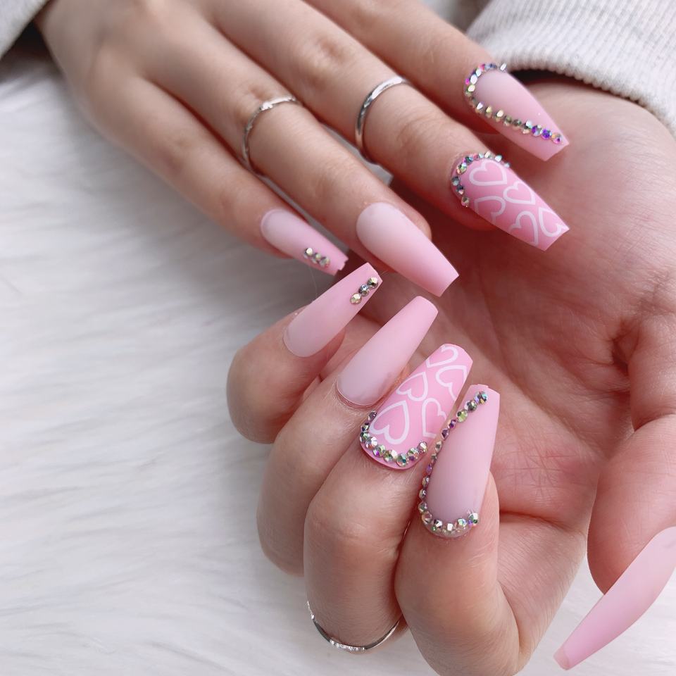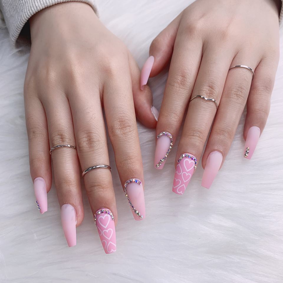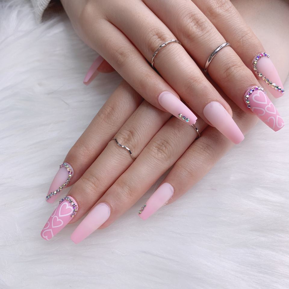 TSZS 2022 rose longue presse de luxe faite à la main sur les ongles avec strass bâton de cercueil sur faux ongles personnalisé