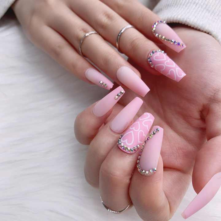 TSZS 2022 Faux ongles longs roses faits à la main de luxe à coller avec strass, forme cercueil personnalisée