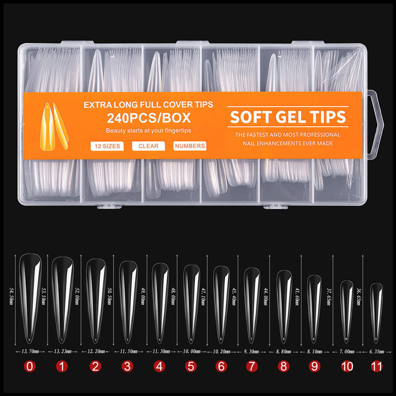 TSZS 240 pièces/boîte embouts de Gel doux XXL Nail Art faux ongles en gros couverture complète embouts d'ongles en acrylique Stiletto pour l'extension de manucure