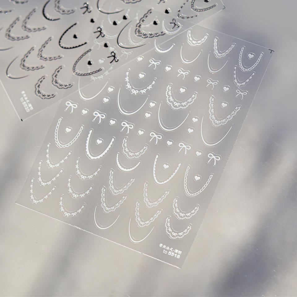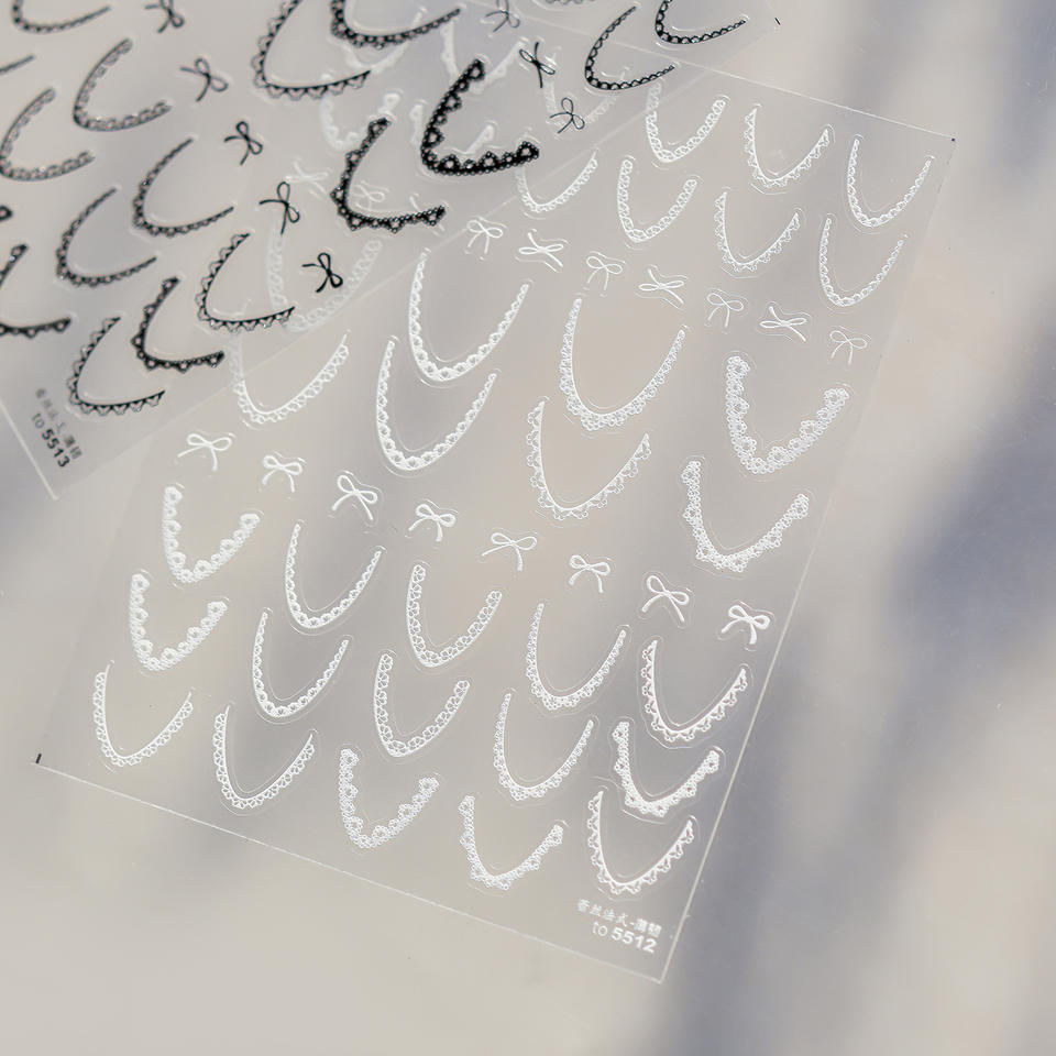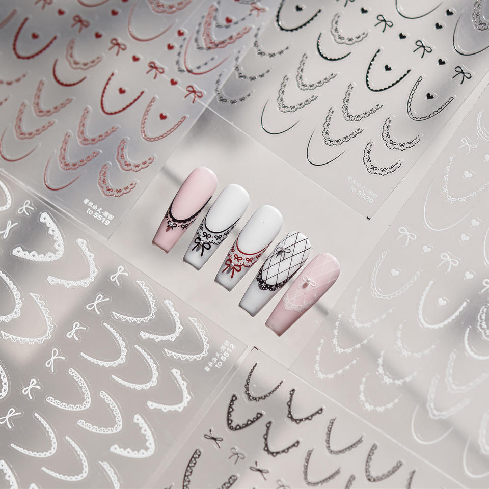 Autocollants pour ongles TSZS, nouvelle ligne française mignonne avec nœud, autocollants pour ongles en dentelle 3D, ligne française, autocollants pour ongles