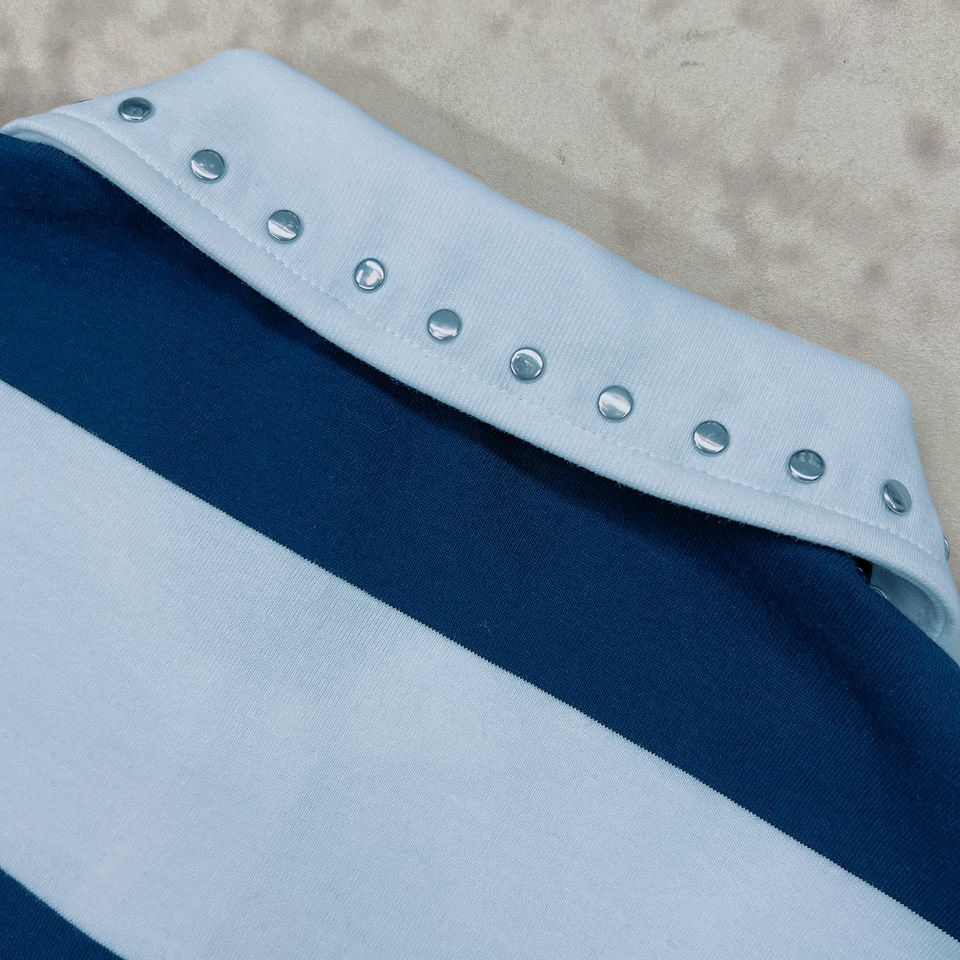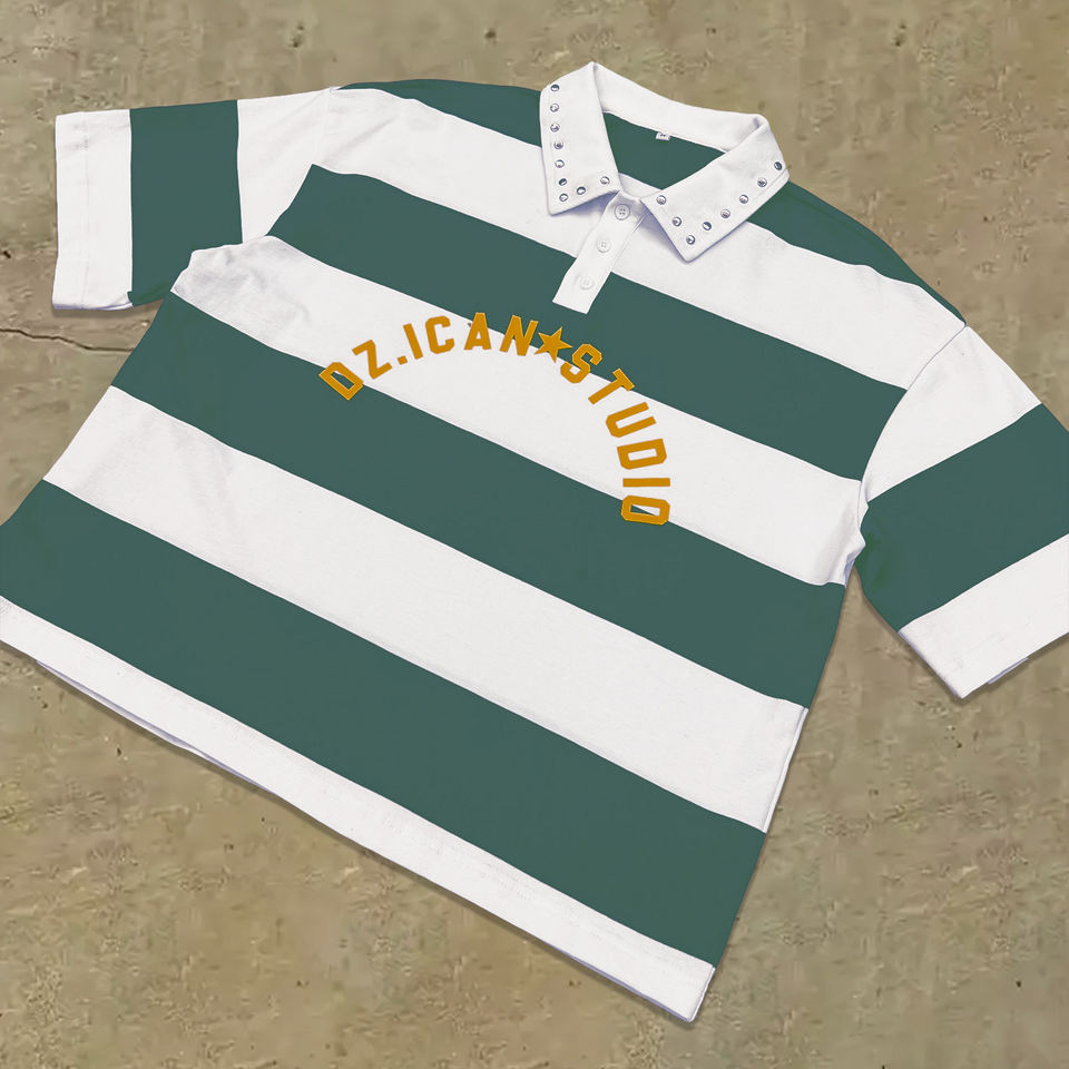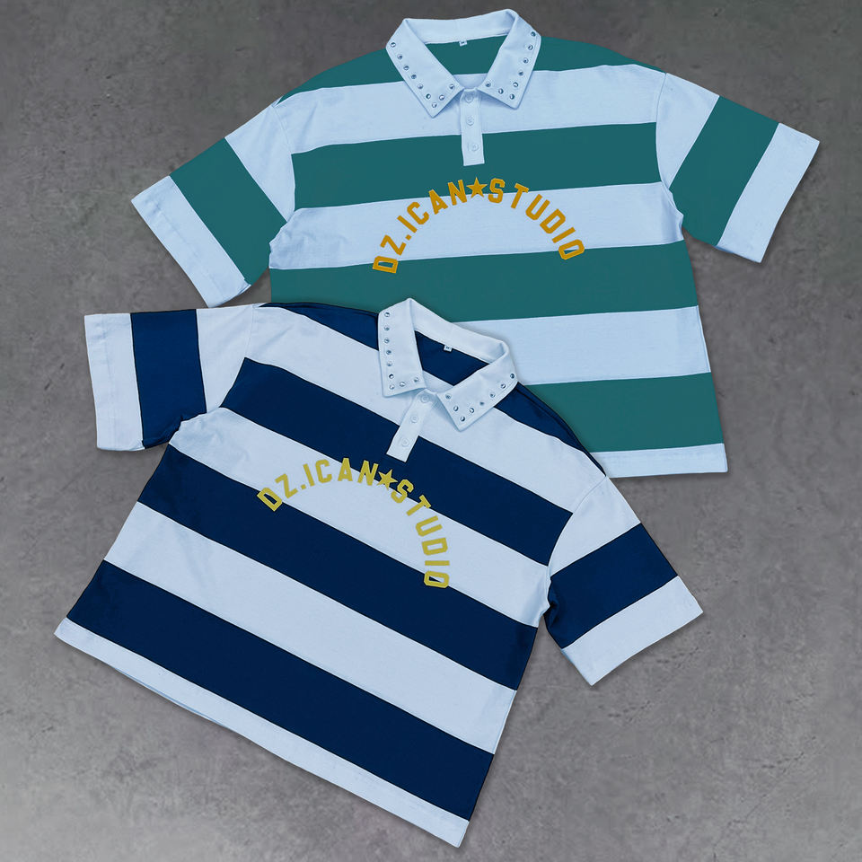 Polo rétro de rugby en coton imprimé à rayures, coupe carrée et courte, avec rivets et clous, pour homme, de haute qualité