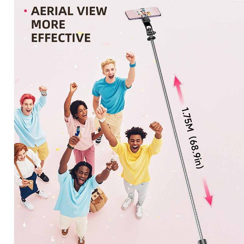 TT02 Selfie Stick 1750mm Stable Automatique Pop Open Trépied Télécommande Sans Fil Selfie Stick 360 Rotation