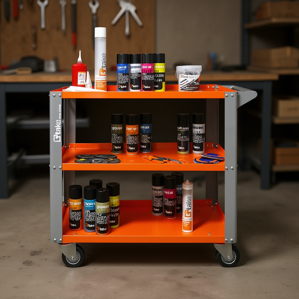 Chariot de rangement à outils TTAKE en plastique à 3 étagères, grand modèle, avec roues, orange, garantie de 3 ans