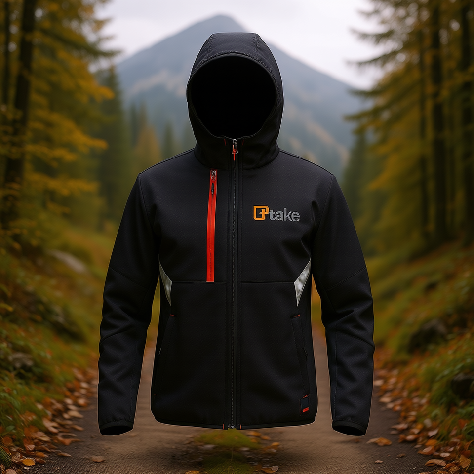 Veste Softshell TTAKE noire à capuche respirante et sportive avec fermeture éclair pour toutes les saisons