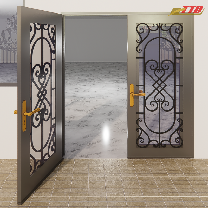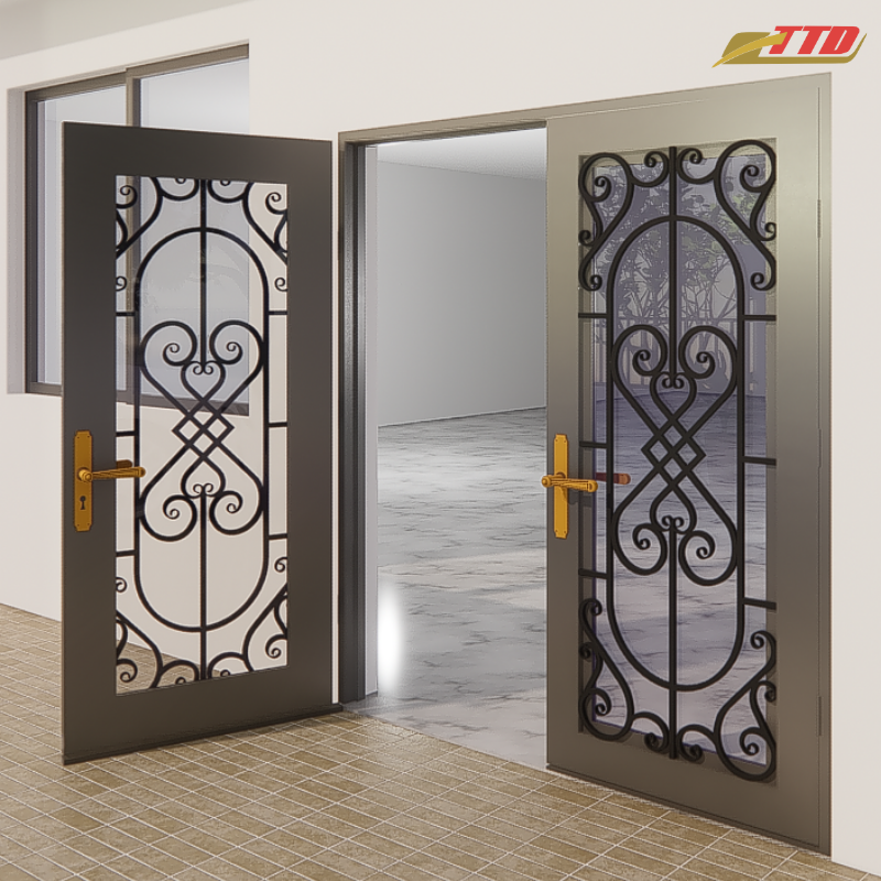 Portes d'entrée en fer élégantes TTD, modèle de porte en fer, 100% d'ingrédients du Vietnam, offrant une protection frontale