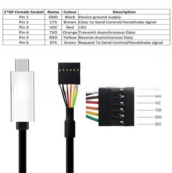 Type:Câble usb type-c, Câble de console FTDI, Câble USB USBC Type C Typec vers 3,3 V TTL UART