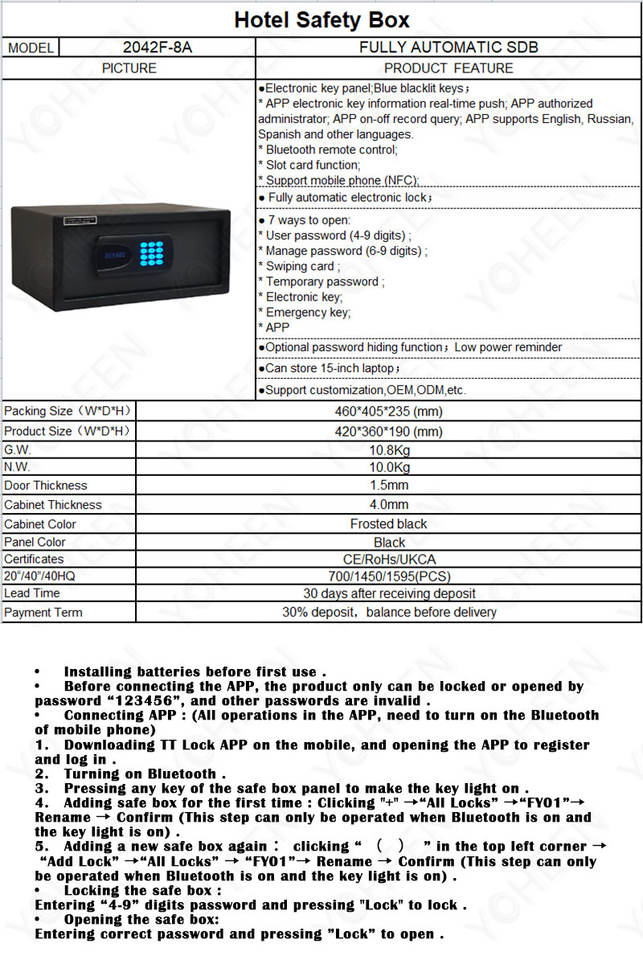 Coffre-Fort Intelligent d'Hôtel en Acier TTLOCK APP, Petit Coffre-Fort d'Hôtel Électronique à Mot de Passe, Coffre-Fort à Code TTLOCK pour Hôtel