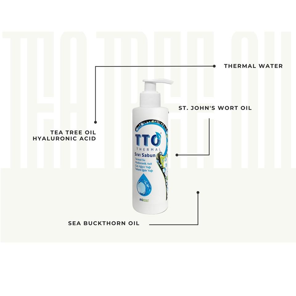 Savon liquide thermique TTO 250ml, blanchissant, nettoyage en profondeur, lavage des mains avec huile d'arbre à thé, huile d'argousier, acide hyaluronique