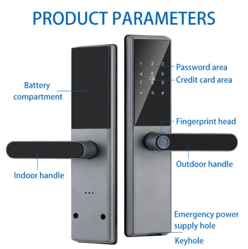 TTlock APP WiFi Serrure de porte intelligente Empreinte digitale Mot de passe numérique Cerraduras Intelligent Alliage d'aluminium Stockage de données en nuage Appartement