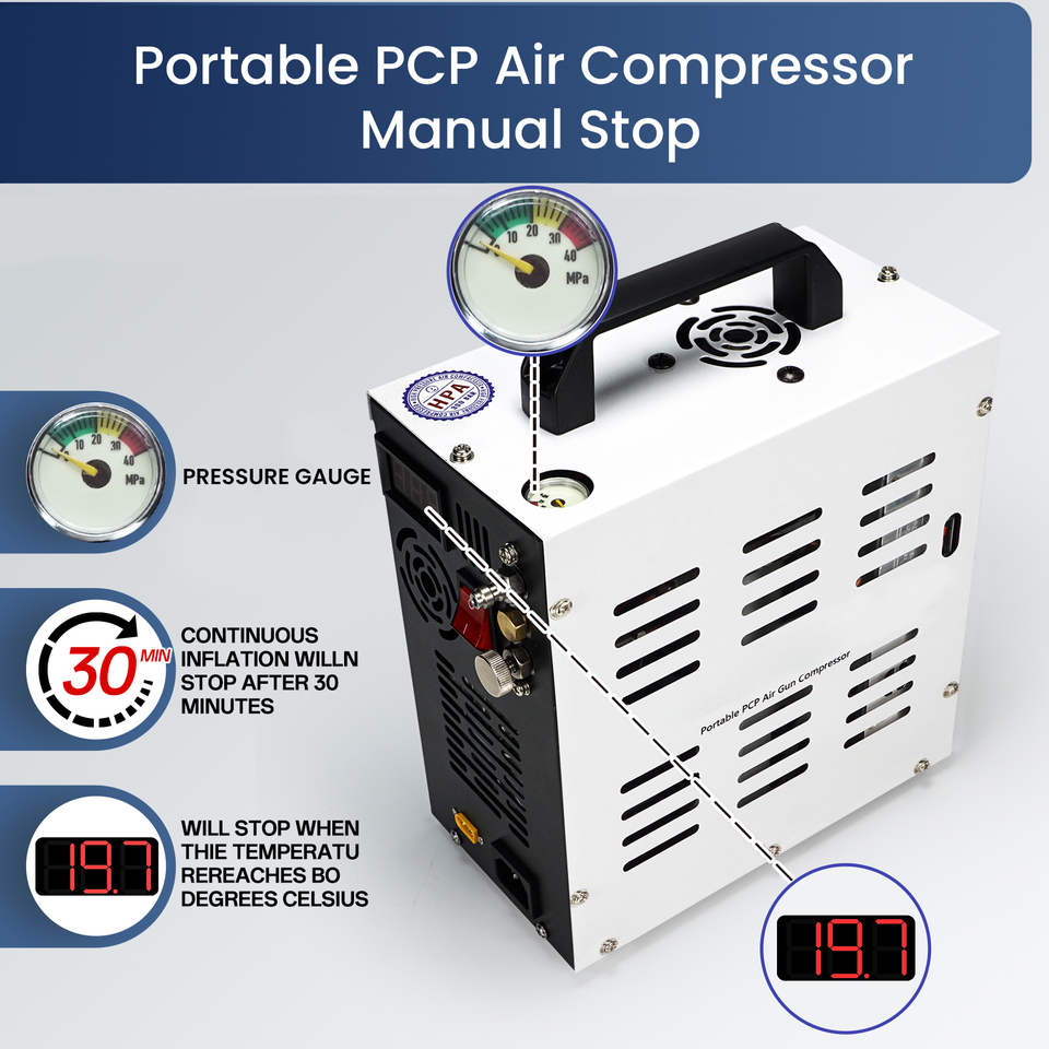TUDIVING CE Offre Spéciale PCP 12V Haute Pression 4500Psi 300Bar 30Mpa Transformateur Intégré Ventilateur De Refroidissement Paintball Jeu Compresseur D'air