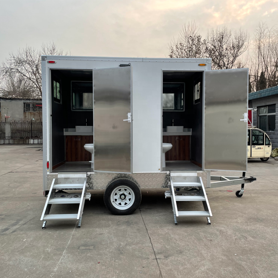 Boîte en bois/chargement dans le conteneur, remorque de toilette de luxe de qualité supérieure remorque de toilette portable de toilette portable mobile à vendre
