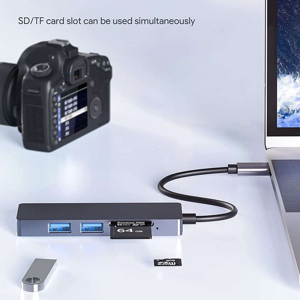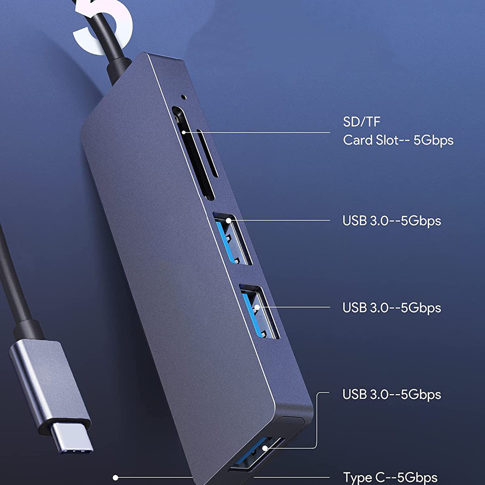 TUTI Moins cher Vente en gros Hub USB 5 en 2 Alliage d'aluminium 3USB 3.0 Lecteur de carte SD TF 5Gbps USB Docking Station pour ordinateur portable/Mac