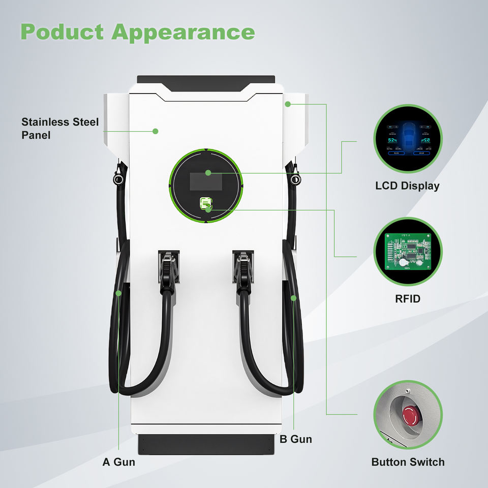 Chargeur de voiture électrique commercial TUV nouvelle conception GBT CCS2 CCS1 DC 80 kW OCPP RFID avec attache-câble