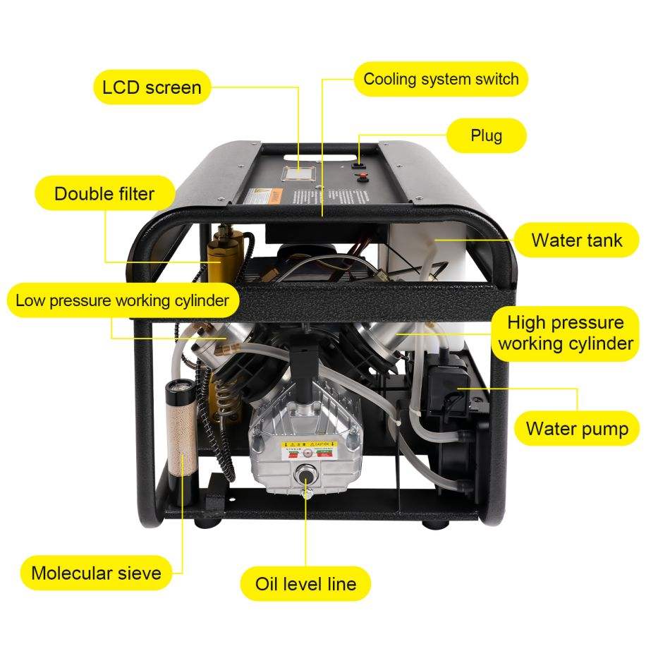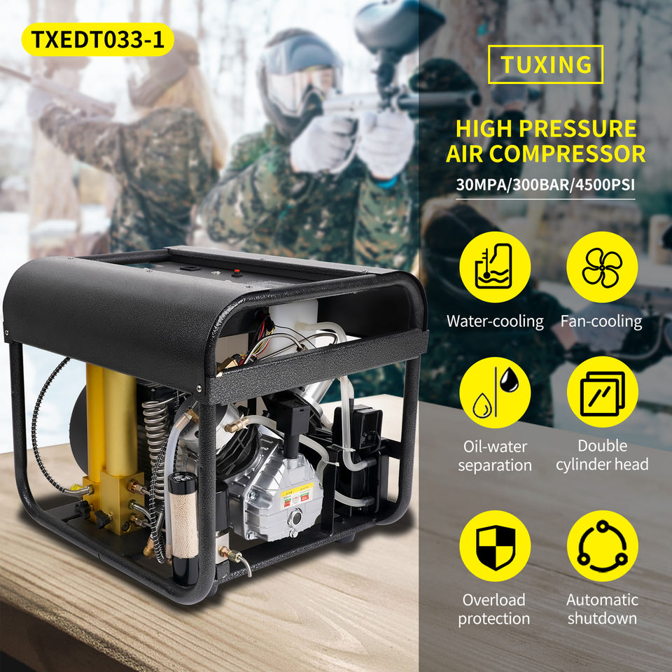 Compresseur d'air à double cylindre TUXING de haute qualité avec écran LCD, 4500 psi, 300 bar, 220 V, purge automatique, pour bouteille de plongée PCP et snorkeling