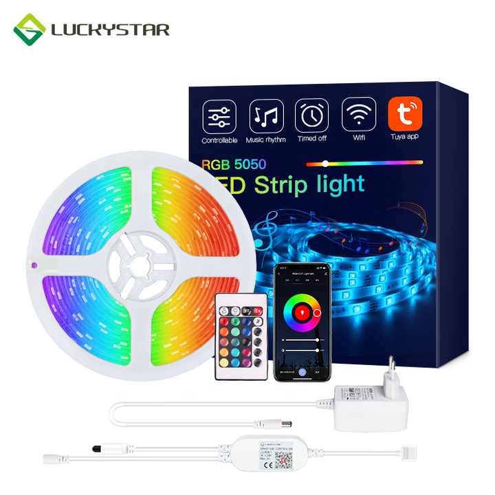 Bande Lumineuse LED Flexible DC12V RVB Colorée SMD 5050 TUYA Smart APP, Éclairage de Fond TV Étanche avec Application Tuya