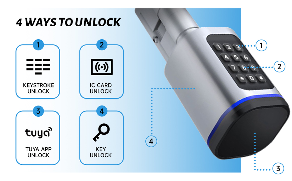 Tuya App,Fingerprint,IC Card,Mechanical Key