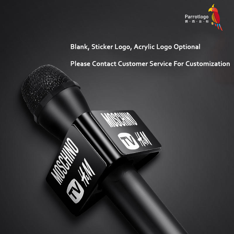 Autocollant de logo de marque pour microphone de station de base en acrylique, idéal pour les interviews de journalistes télévisés et les petits animateurs