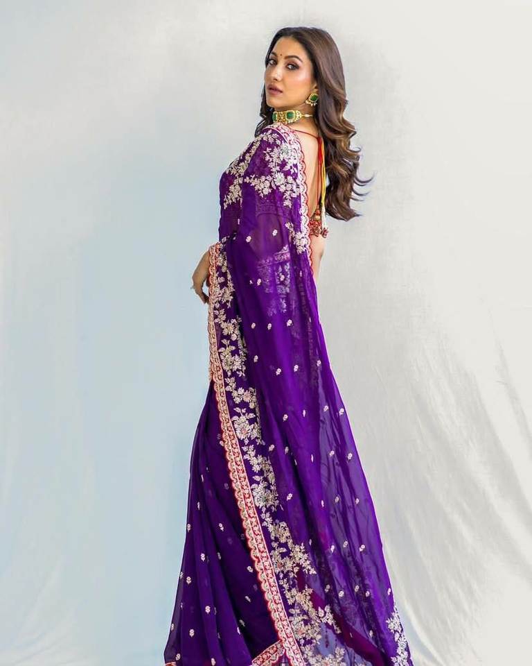 TV Serial Actrice Style Doux & Pur Rangoli floraison soie Tissu richement orné saree met en valeur paillettes, perles et travail zari