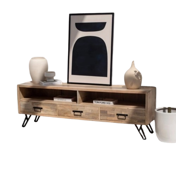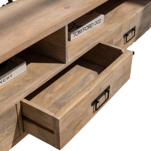 Meuble TV de rangement réglable en bois massif fait à la main pour le salon