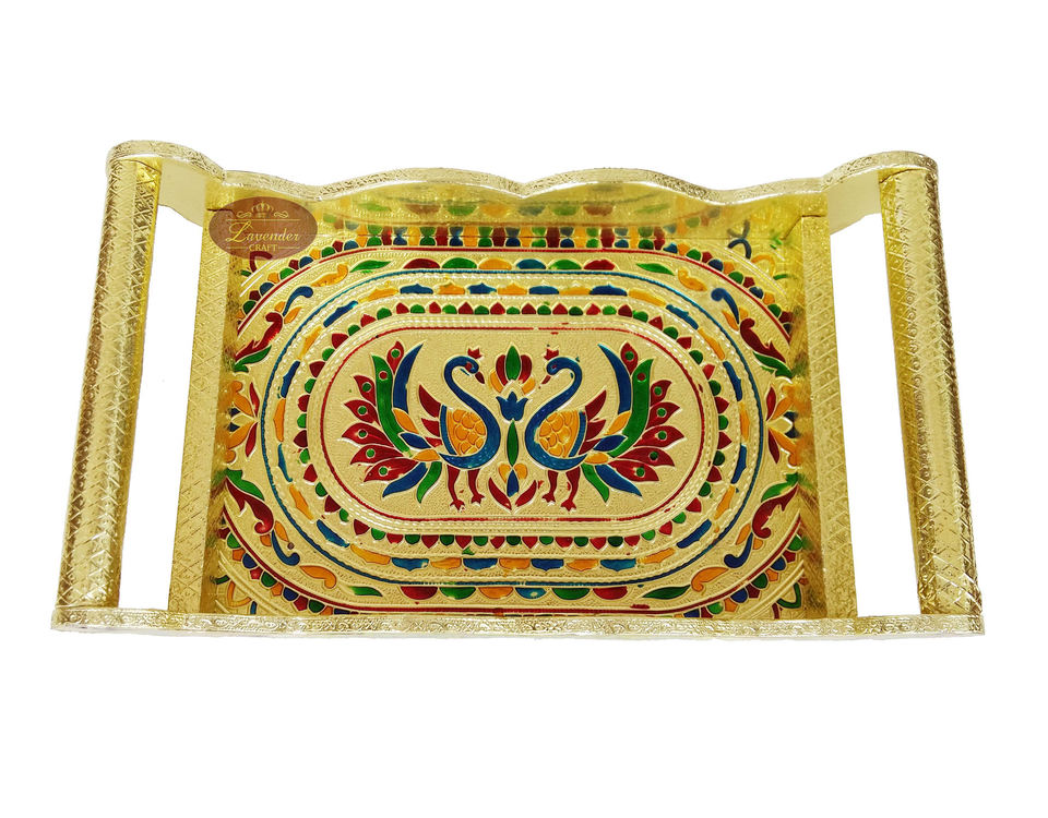 Couleur: Doré/Argent/Argent oxydéLe paon a conçu le plateau-ensemble en verre