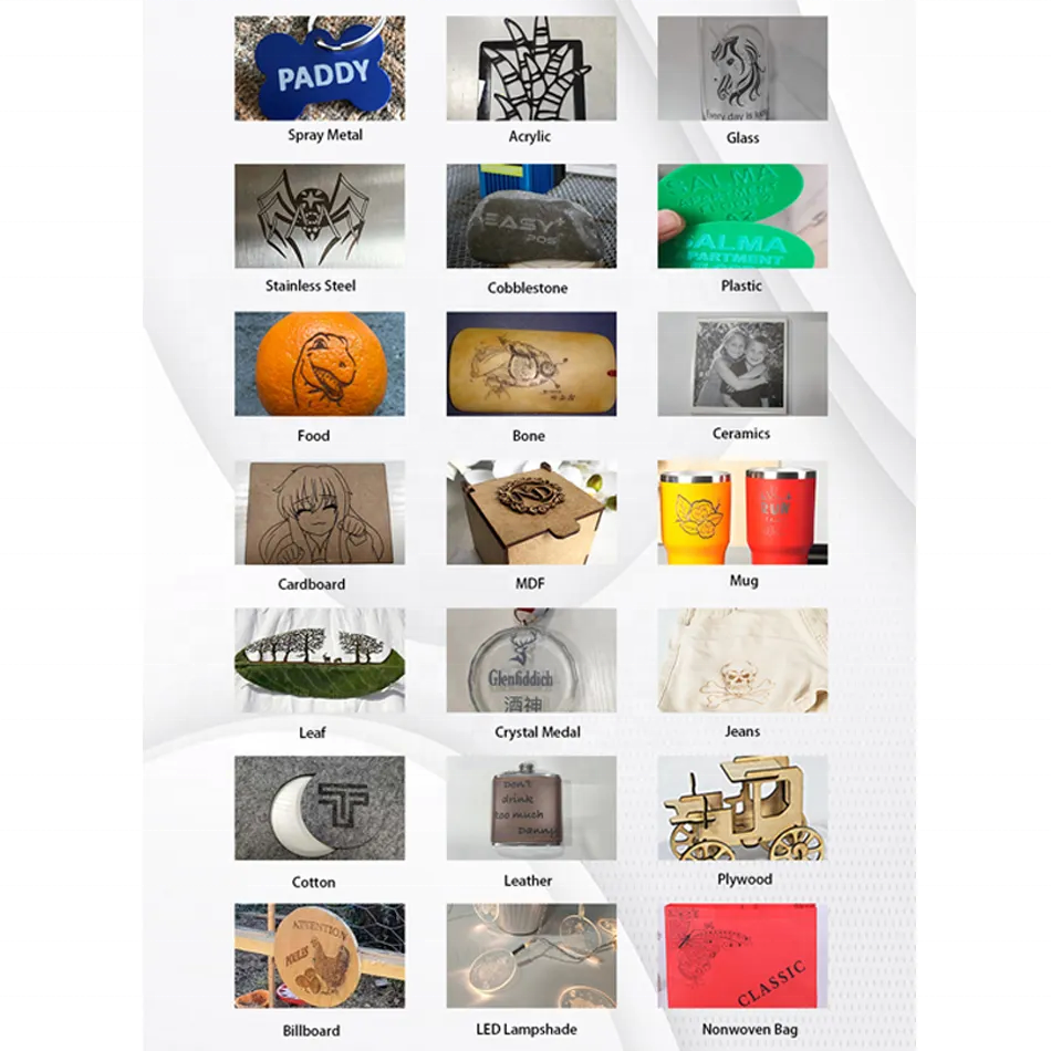 Applicable Material:Acrylic, Glass , Plastic, Plywood, Rubber, Stone, Wood, Metal,etc