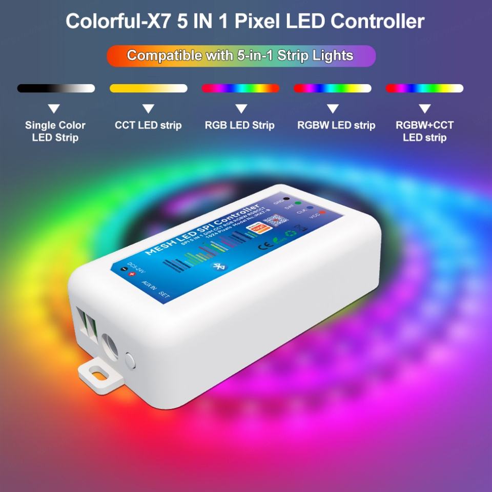 TY-X7-BLUE 5-EN-1 1024IC Contrôleur SPI d'écran lumineux numérique à pixels adressables RGB pour bande LED avec contrôle du spectre musical IP20 30M APP