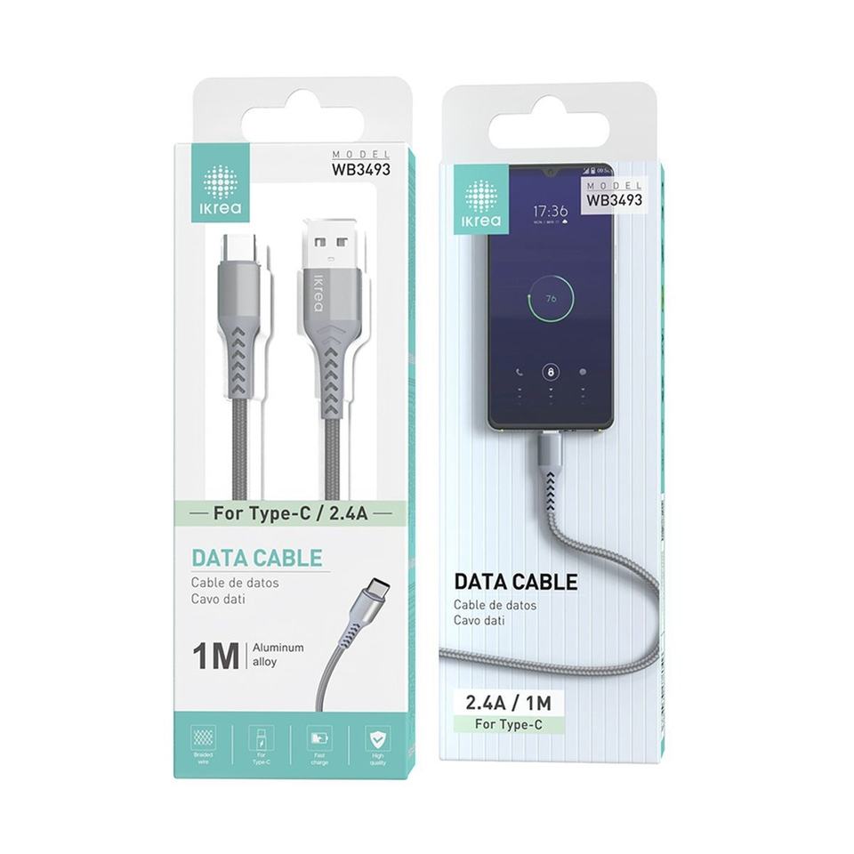 Câble de données TYPE-C 2.4A 1M en gris-Accessoires tech